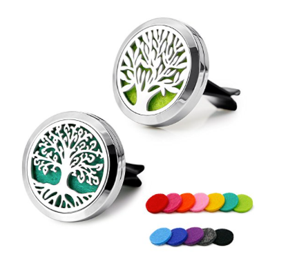 Another neat product is a diffuser for your vehicle. There are a few different types on the market right now. Some are clip diffusers that attach to your air conditioning vents and diffuse oils from the interior felt pad as the force of air enters your car. There are a few other varieties that are powered from your auxiliary power outlet. This type usually warms the essential oil to diffuse it throughout your vehicle. You'll find some of my favorite designs below. (Interestingly, the third on the list can also be used as an escape tool to break the car window in case of emergency!)